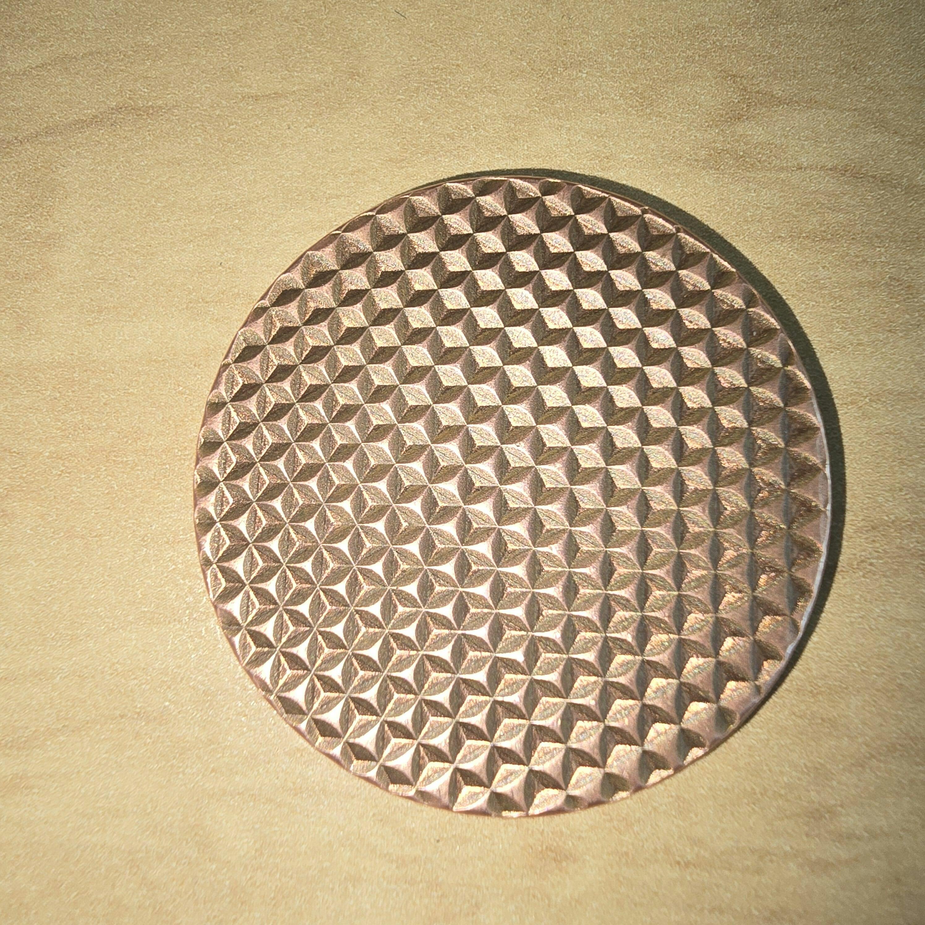 Textured Worry Stone - Raw Copper - Geometric Pattern Copper Coin